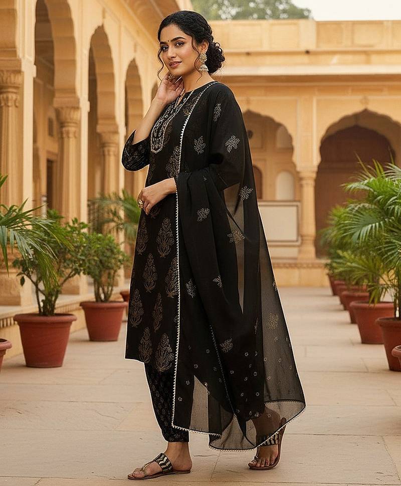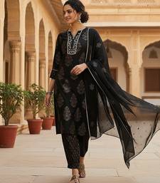 Black color embroidered viscose rayon styles kurta salwar with dupatta
