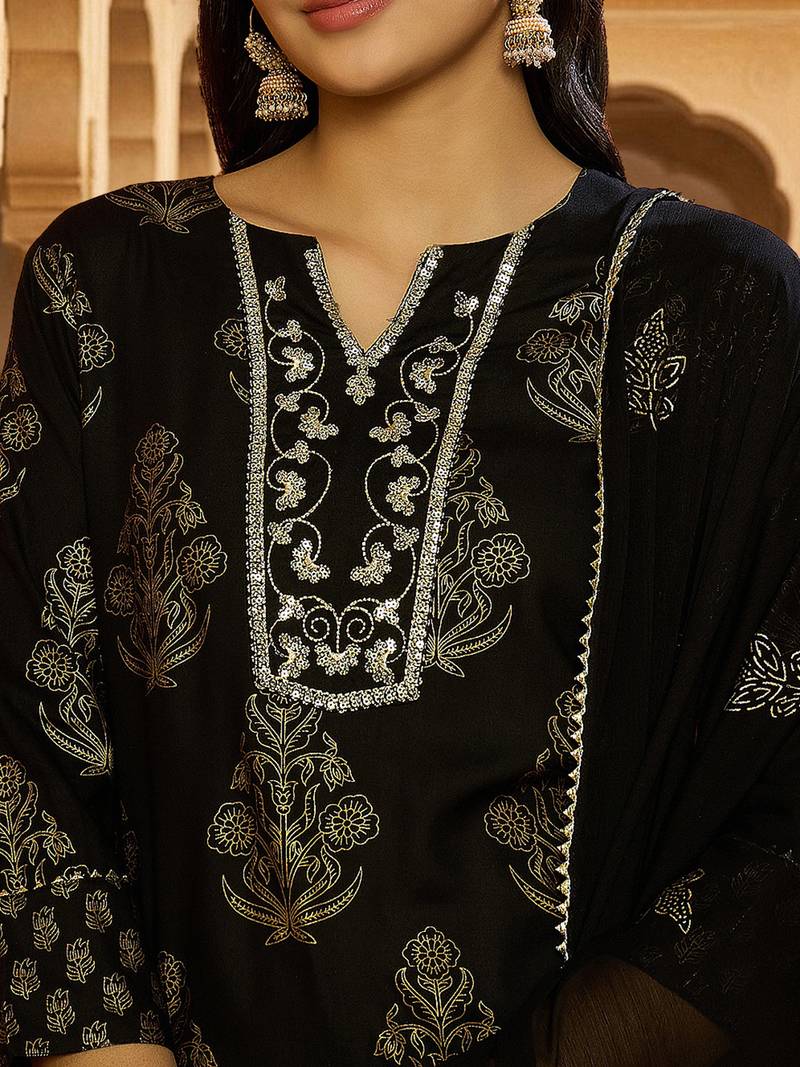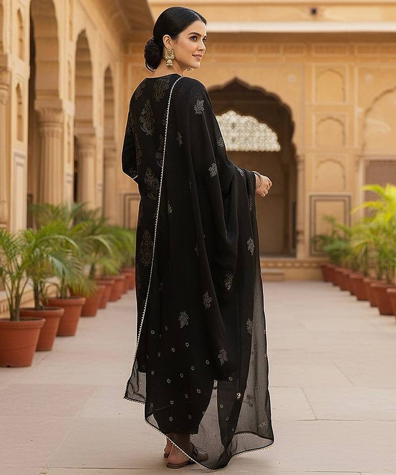 Product Name | Black Color Embroidered Viscose Rayon Styles Kurta Salwar With Dupatta | |