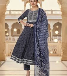 Navy blue color embroidered rayon styles kurta trouser with dupatta