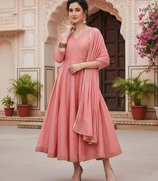 Pink printed poly silk styles women's kurta trousers with dupatta