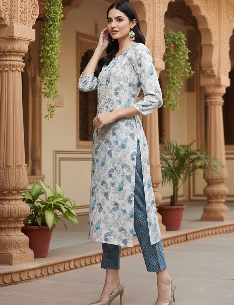 | Product Name | White Color Embroidered Poly Chanderi Styles Kurta Trouser With Dupatta | |