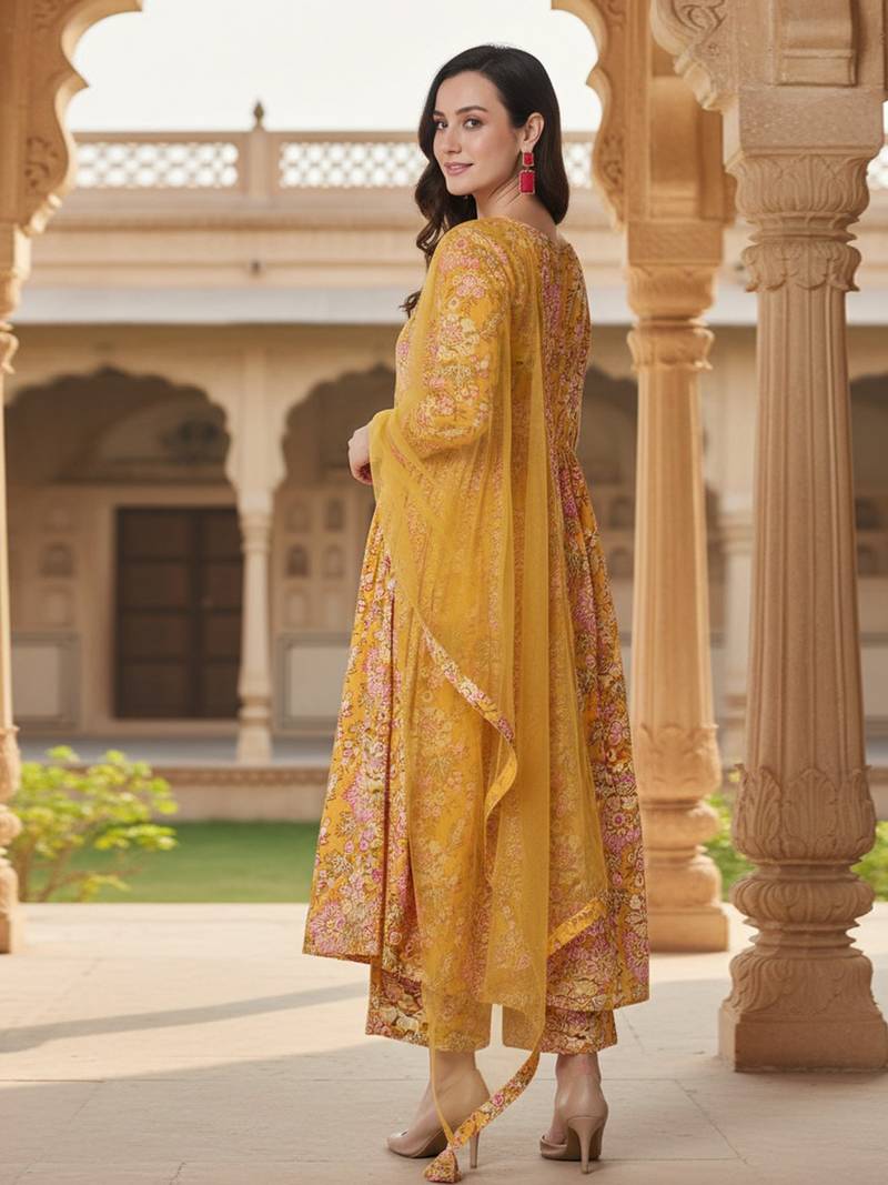 | Product Name | Yellow Color Printed Rayon Styles Kurta Palazzo With Dupatta | |