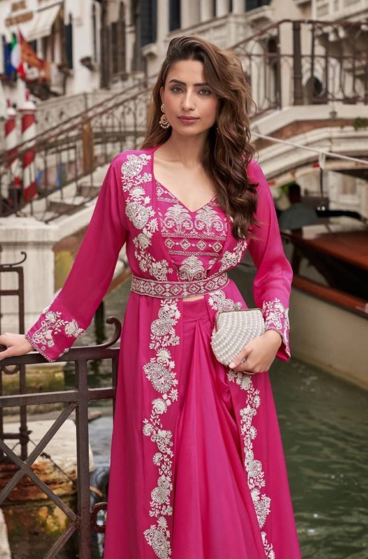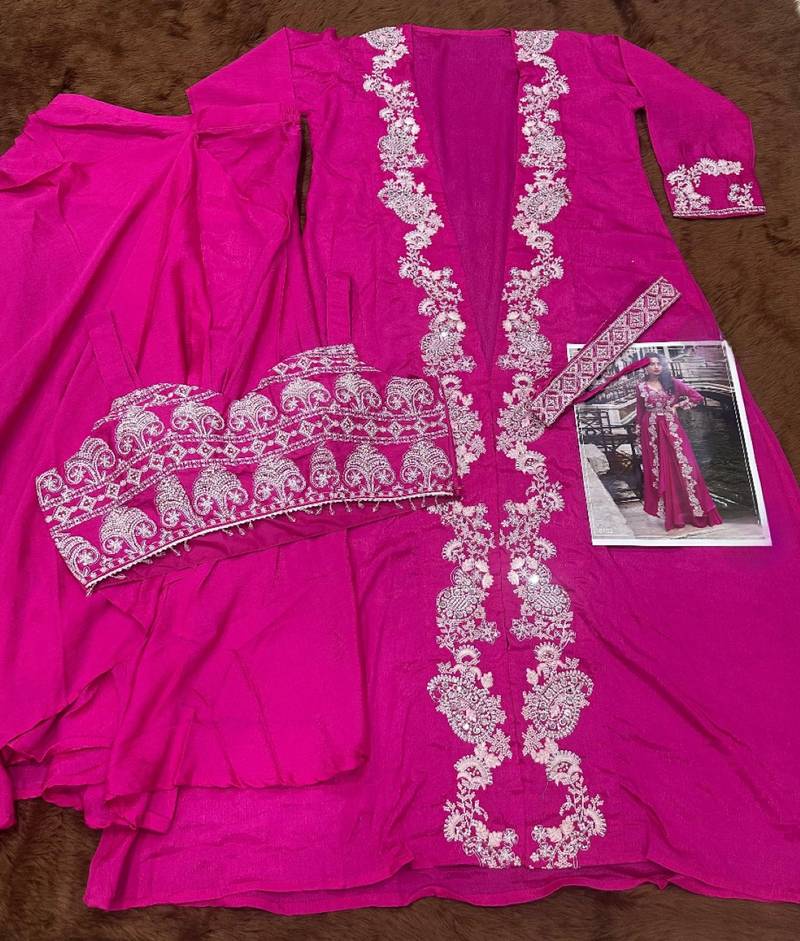 | Product Name | Magenta Chinon Silk Shrug Suit Full Stitched Free Size | |