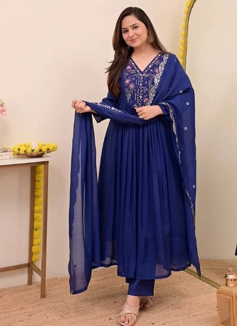 | Product Name | Women Floral Embroidered Panelled Thread Work Kurta With Trousers & With Dupatta | |
