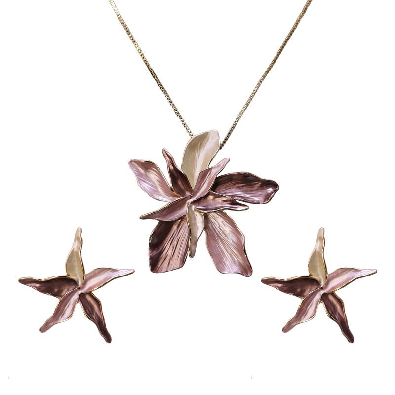 Women s floral statement necklace set with matching earrings | elegant gold plated fashion jewelry for women