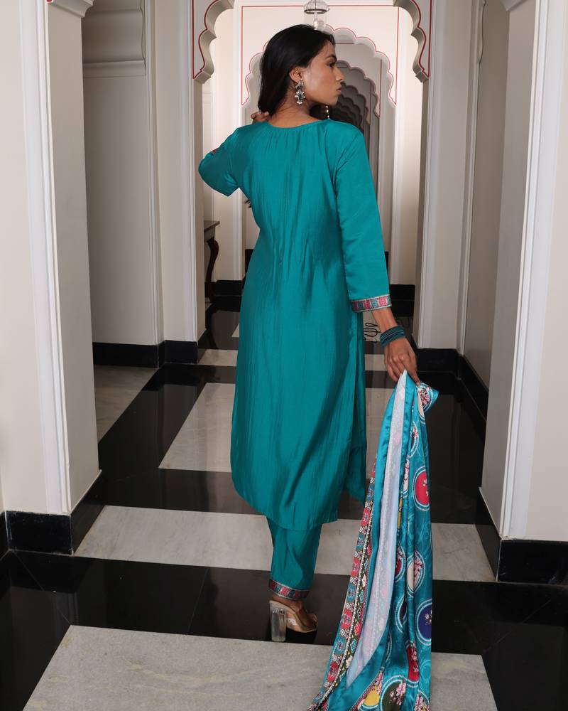 Firozi color viscos simmer fabric designer embroidered heavy ceremonial wear salwar kameez
