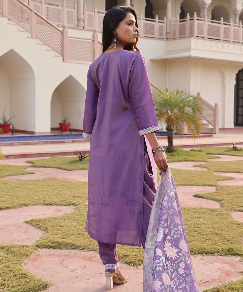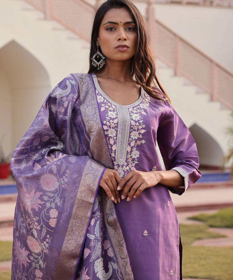 | Product Name | Lavender Color Simmer Silk Fabric Designer Embroidered Heavy Ceremonial Wear Salwar Kameez | |