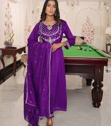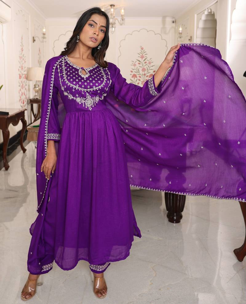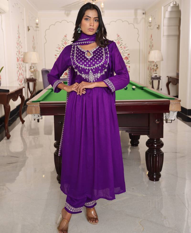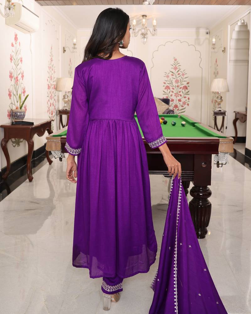 Purple color soft silk fabric designer embroidered heavy ceremonial wear salwar kameez