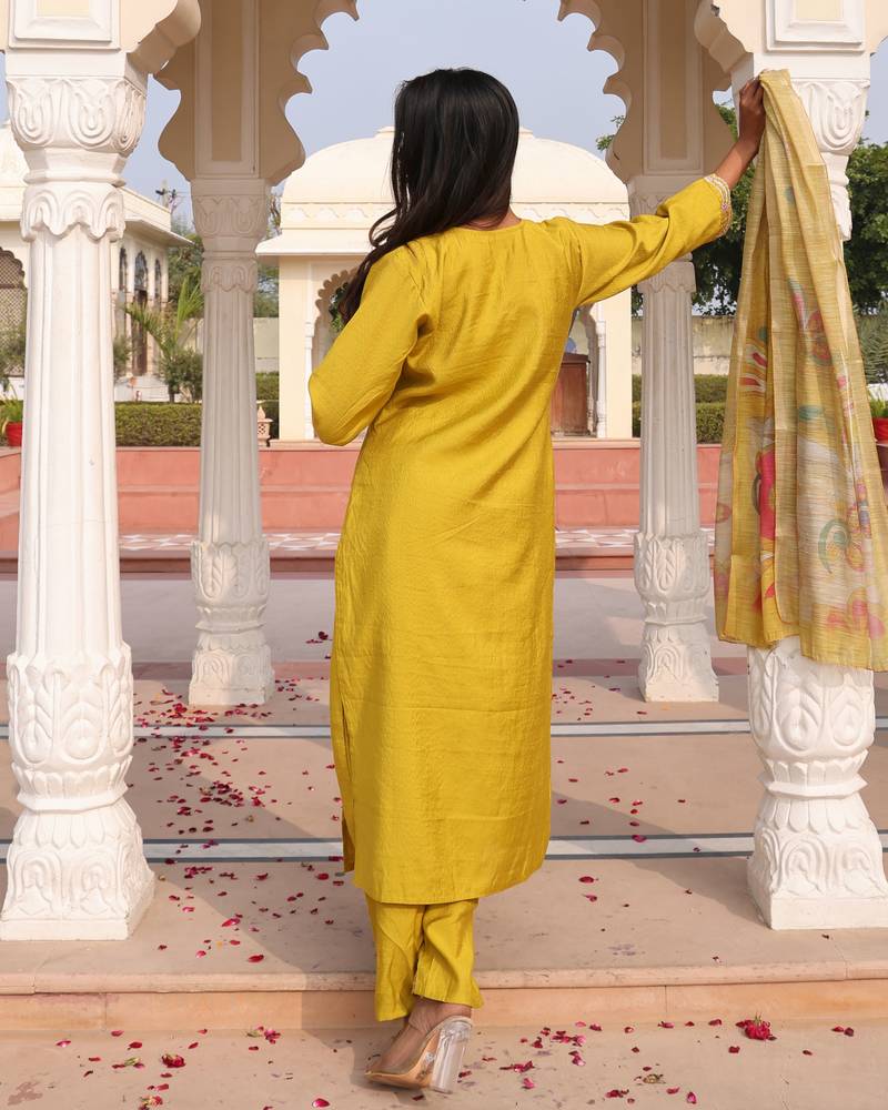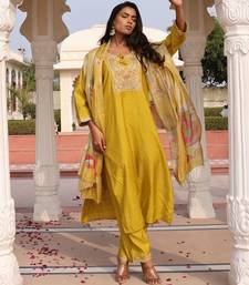 | Product Name | Yellow Color Cotton Silk Fabric Designer Embroidered Heavy Ceremonial Wear Salwar Kameez | |