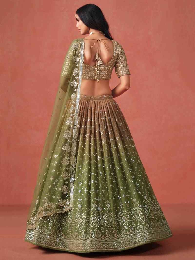 Mehendi georgette sequins zari embroidered lehenga choli