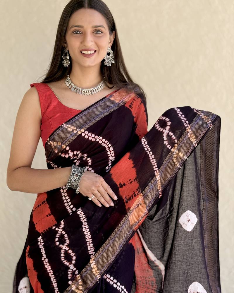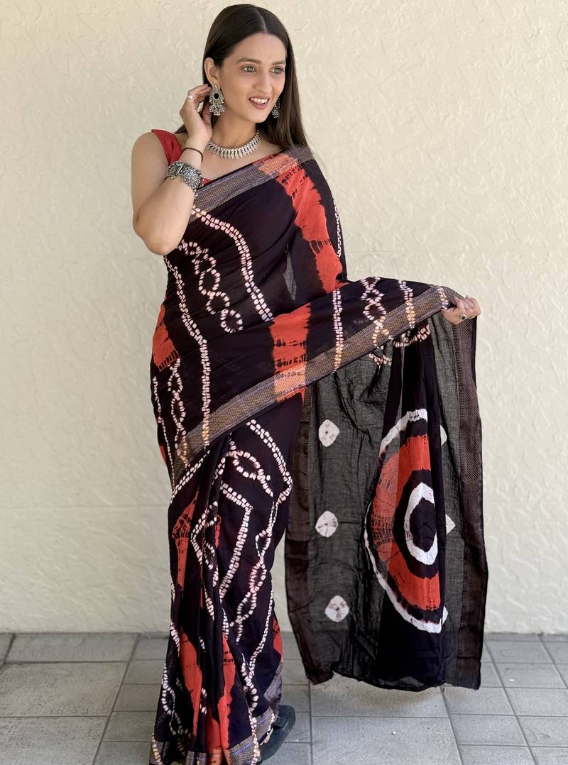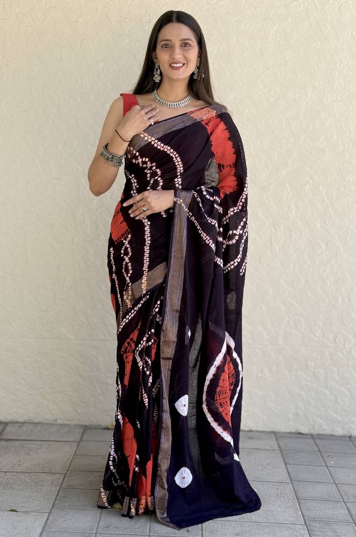 Pure soft mulmul cotton hand tie n dye shibori n bandhej print saree
