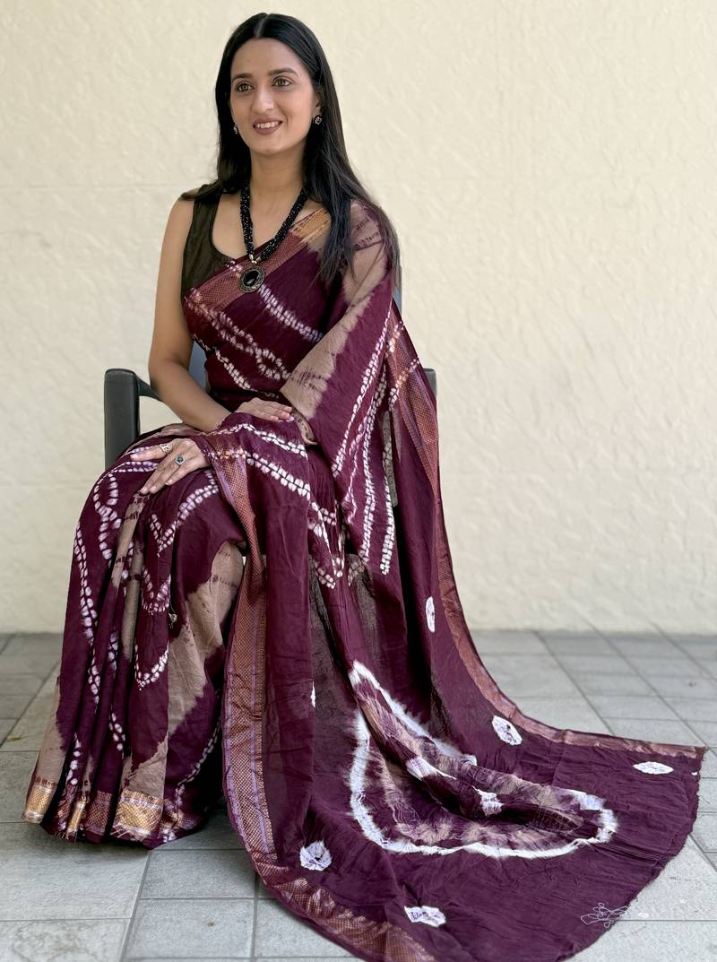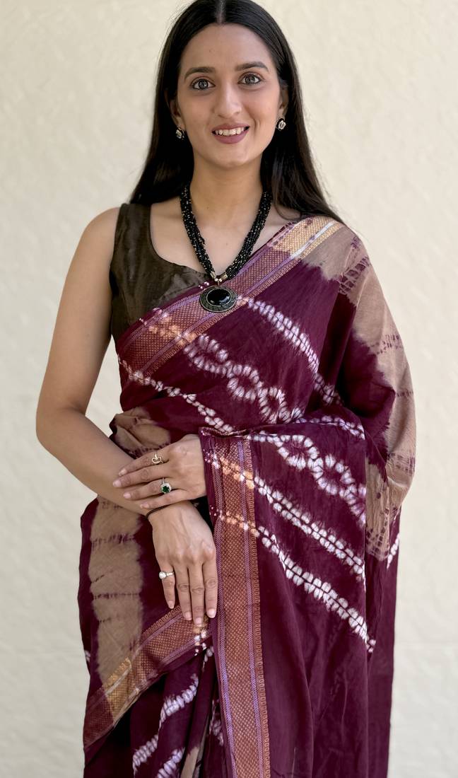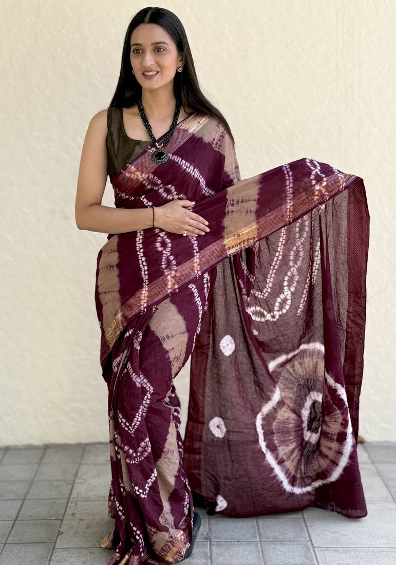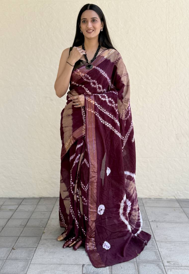 Pure soft mulmul cotton hand tie n dye shibori n bandhej print saree