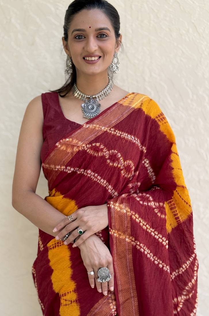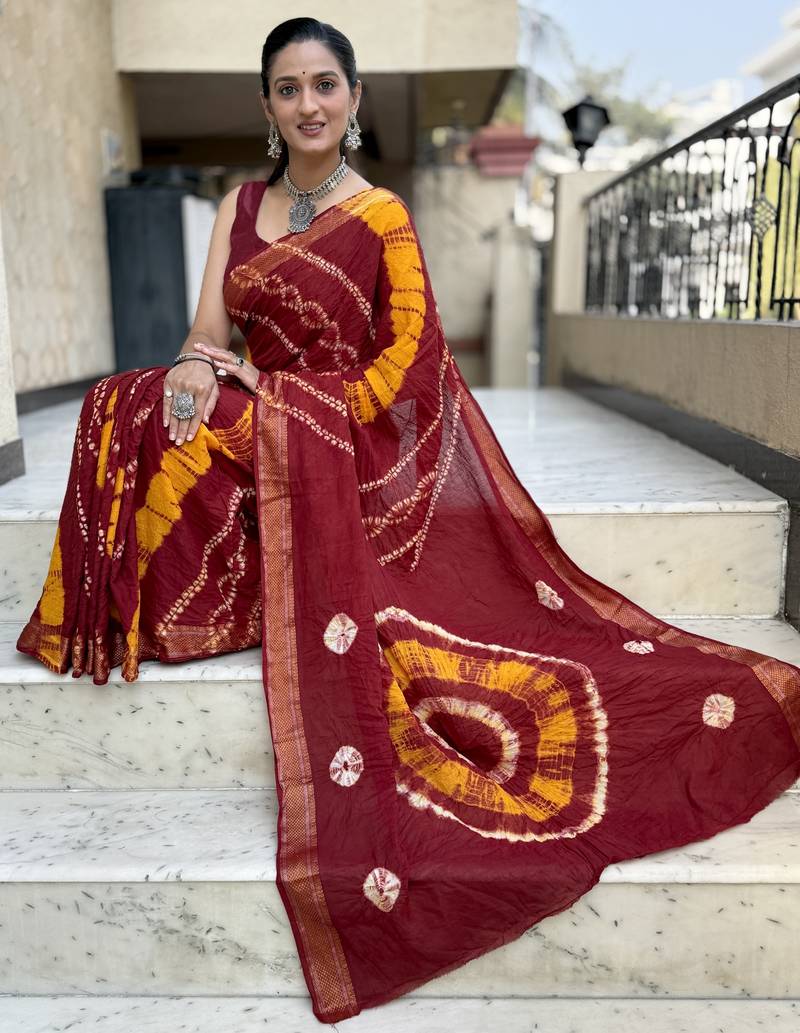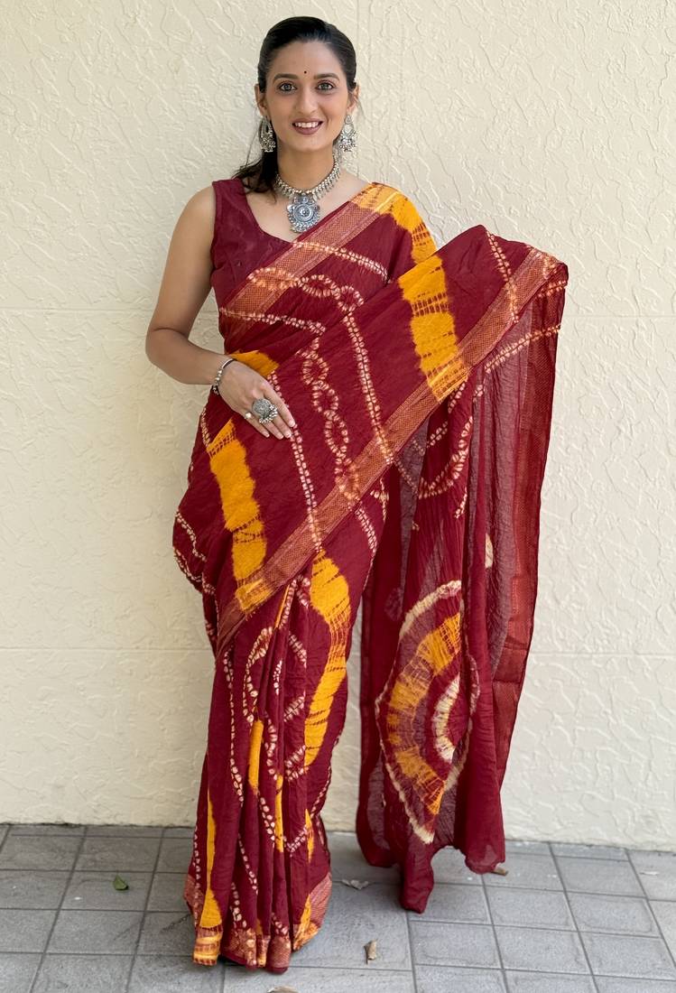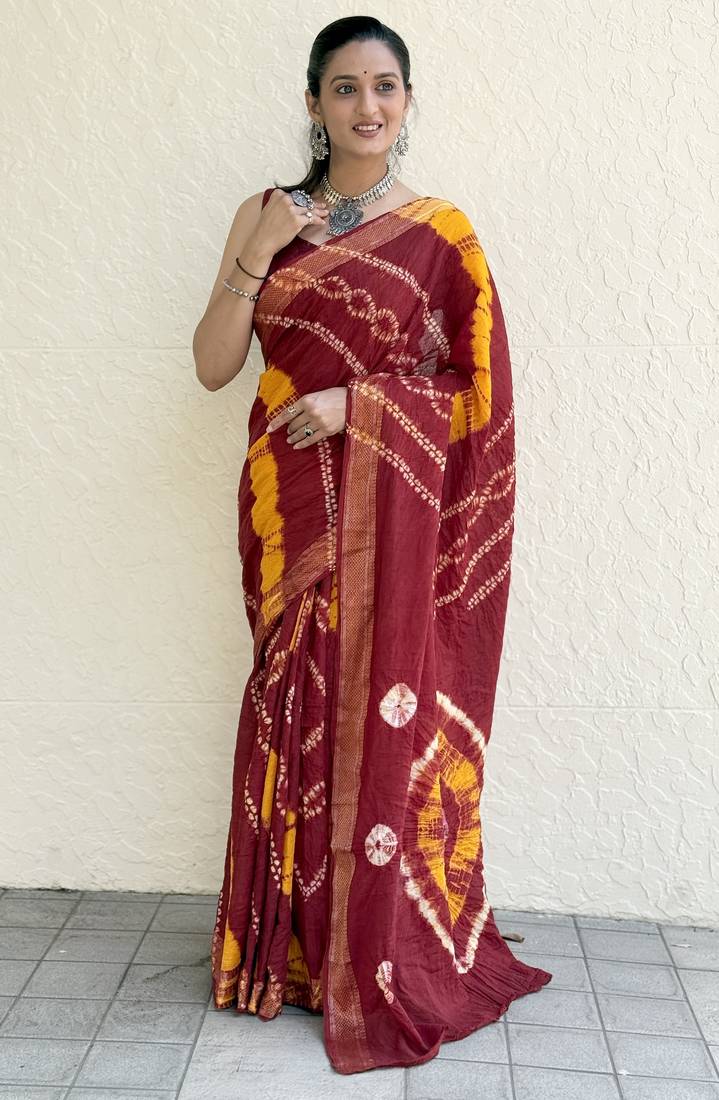 Pure soft mulmul cotton hand tie n dye shibori n bandhej print saree