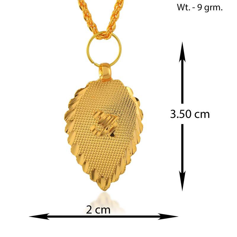 | Product Description | Elevate Your Style With This Exquisitely Crafted Gold Plated Pendant, Designed To Resonate With Both Tradition And Modern Fashion. Made From Premium Brass, This Super Lightweight Pendant Features A Textured Leaf Design With Serrated Edges That Mimic Nature’s Grace. At Its Heart Lies A Radiant Om Engraving, Symbolizing Peace, Energy, And Spiritual Connection. Whether Worn For Daily Devotion, Festive Occasions, Or As A Fashion Statement, This Pendant Is A Timeless Fusion Of Heritage And Elegance—Perfect For Both Men And Women. |