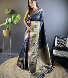 | • | Saree | : | Color- Navy Blue / Fabric- Silk Blend |