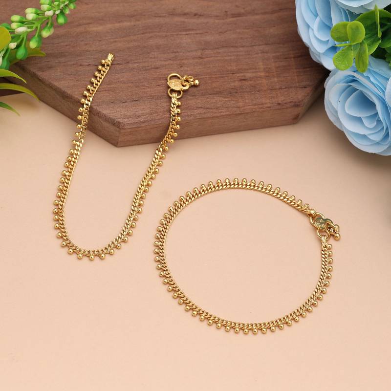 | Product Description | Anklet Length: 23.00 Cm X Width: 0.50 Cm | Metal: Alloy With Good Quality Gold Plated | Color: Gold | Gross Weight: 30.00 Grams | Package Content: 1 Pair Of Anklet |