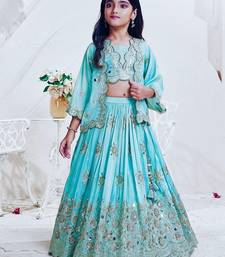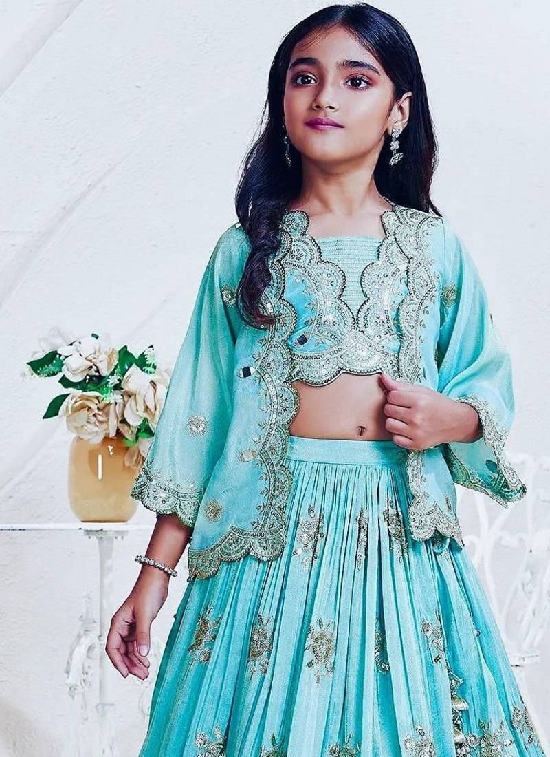 Product Name Chinon Silk Embroidery Work Aqua Blue Readymade Lehenga Choli