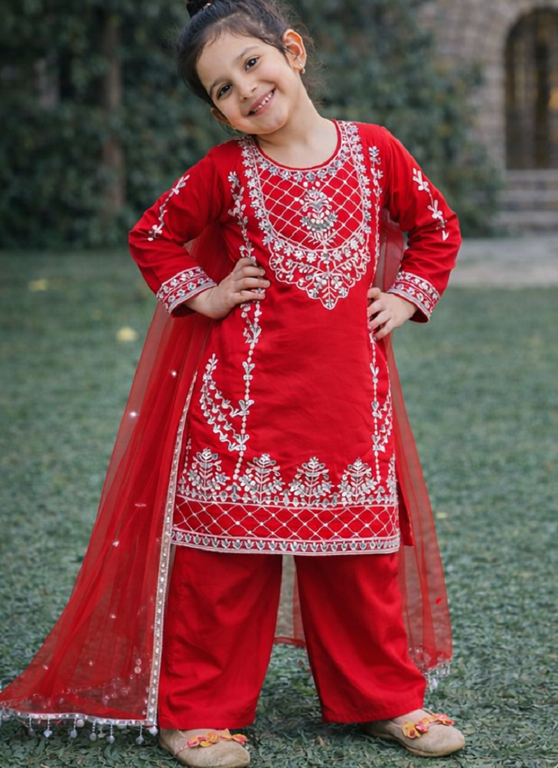 | Product Name | Natural Pure Heavy Creap Embroidery Work Red Readymade Salwar Suit | |