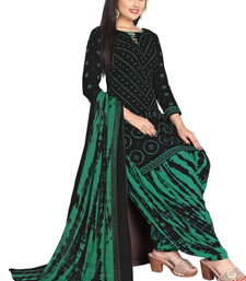 Unstitched printed crepe kurta & patiyala dress material with top, bottom & dupatta