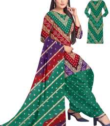 Unstitched printed crepe kurta & patiyala dress material with top, bottom & dupatta