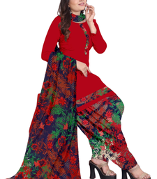 Unstitched printed crepe kurta & patiyala dress material with top, bottom & dupatta