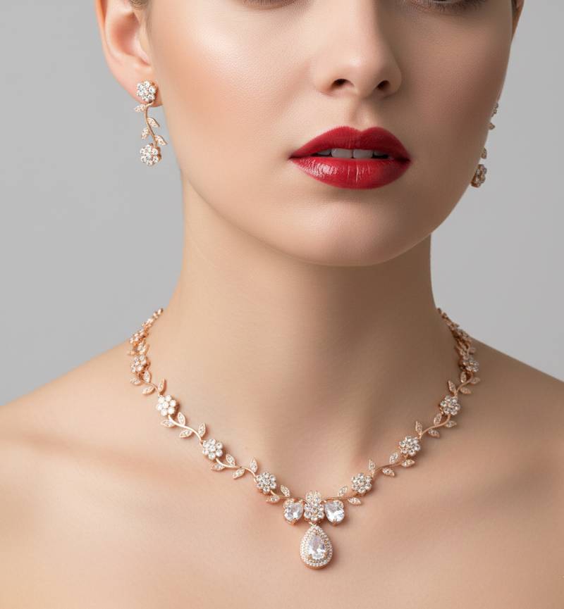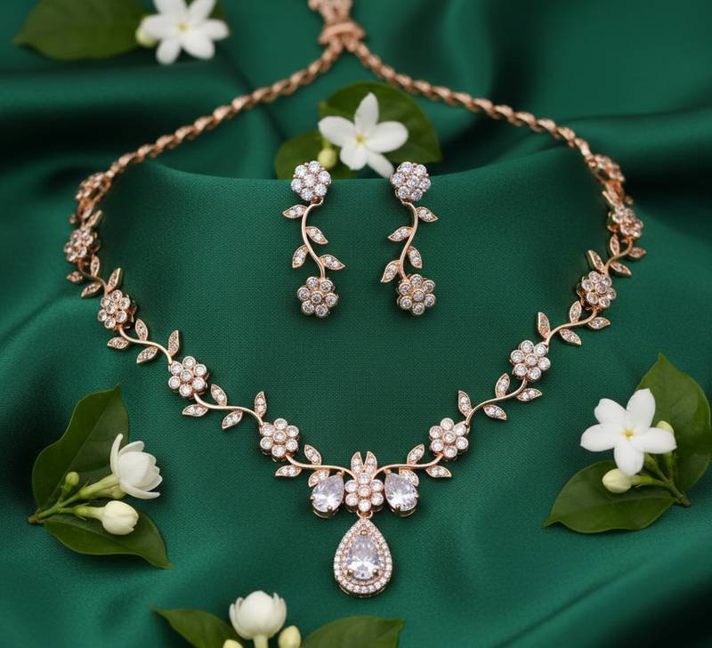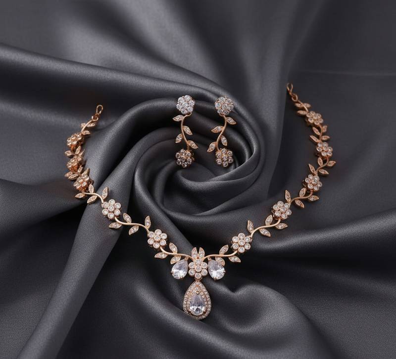 | Product Name | Rose Gold American Diamond Necklace Set | Elegant Cz Crystal Wedding & Party Wear Jewellery | Designer Gift For Her | |