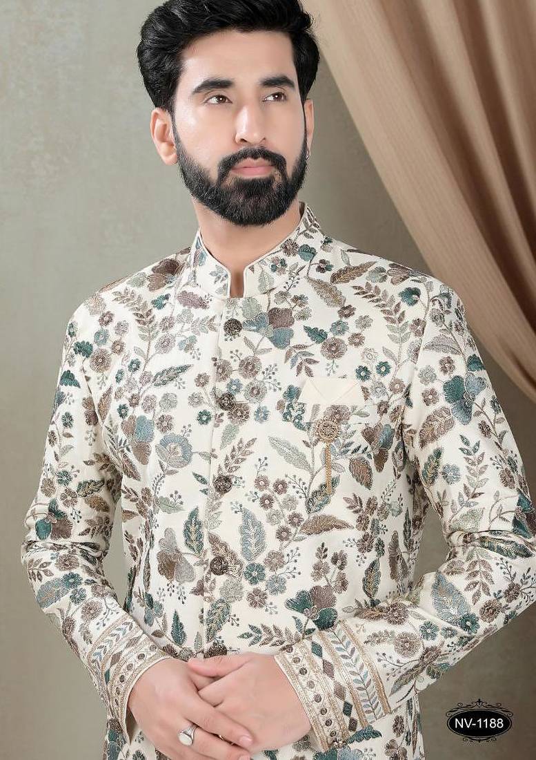 | Product Name | Men's Cream Silk Thread And Sequence Embroidery All Over Kurta Set | |