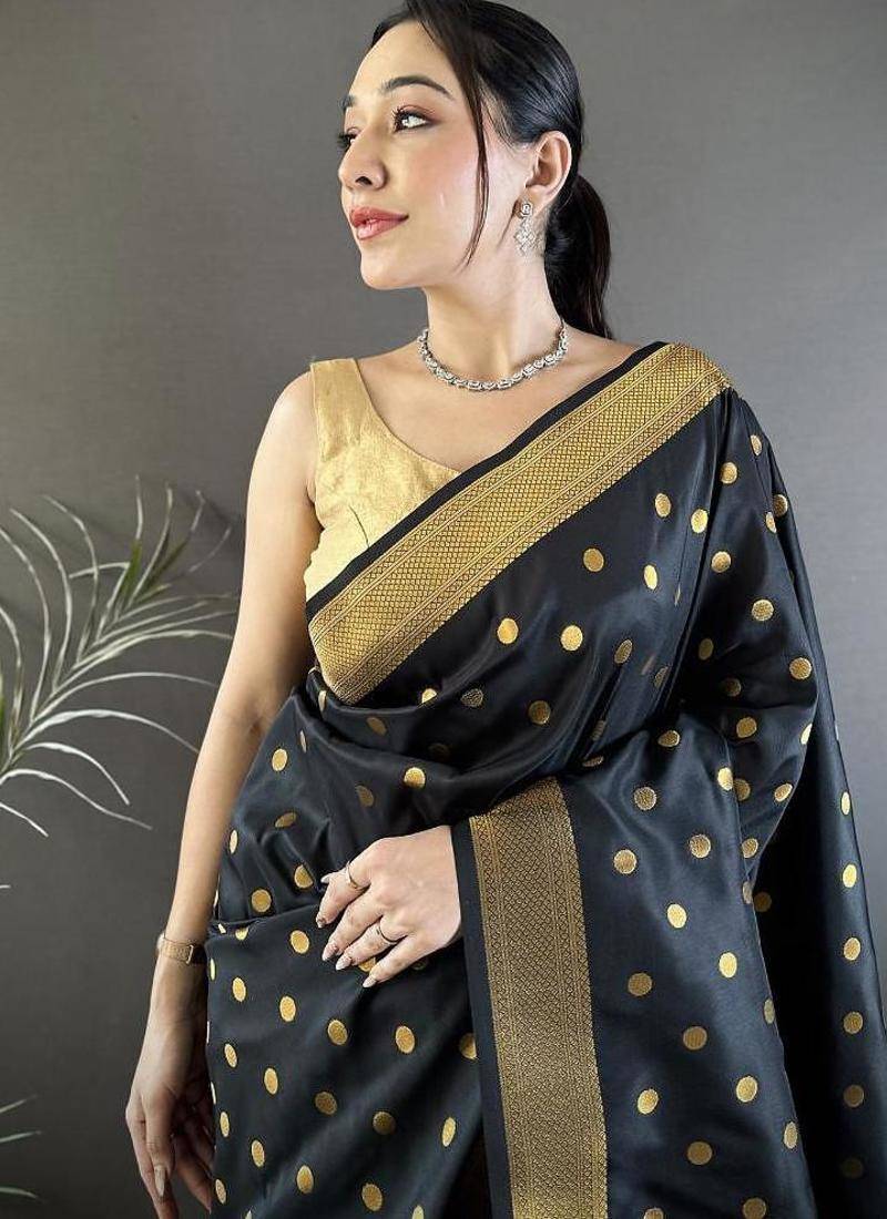 | Product Name | Lichi Art Silk Black Polka Dot Paithani Art Silk Saree | |