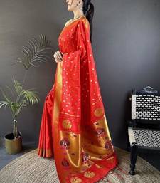 Lichi art silk red polka dot paithani art silk saree