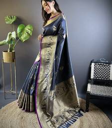 | • | Saree | : | Color- Blue / Fabric- Silk Blend |