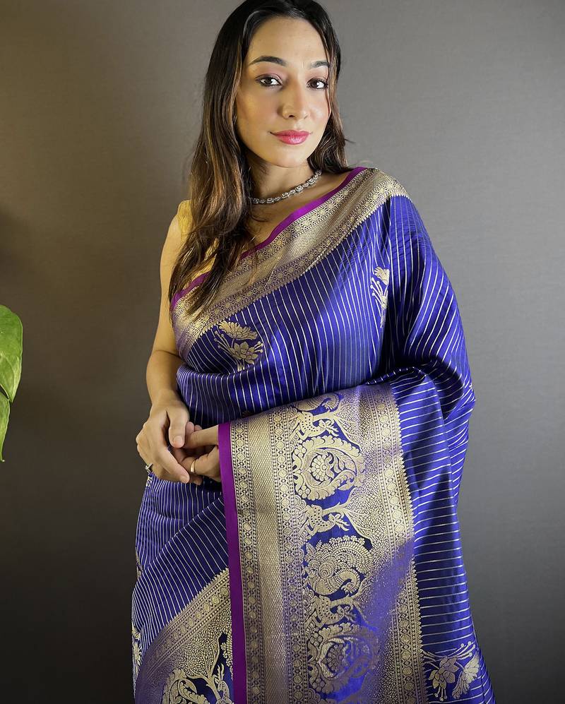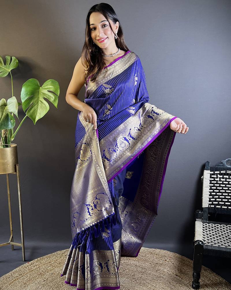 | Product Name | Striped With Floral Motifs Royal Blue Soft Silk Blend Leheriya Saree | |