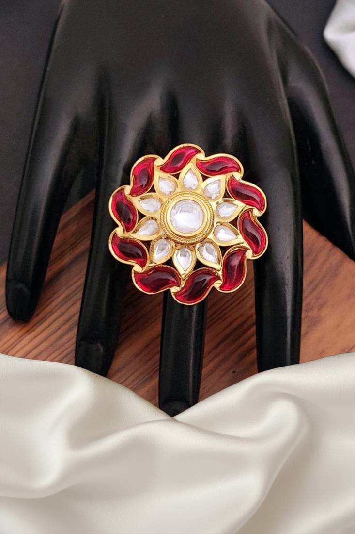| Product Name | Fancy Beautiful Glass Beads Designer High Gold Polish Kundan Finger Ring For Women And Girls | |