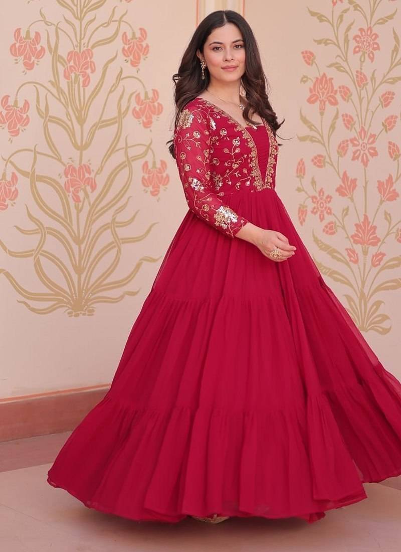 Rani pink faux blooming designer anarkali gown stitched