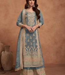 Sky blue party designer palzzo salwar suit with embroidery work semi stitched