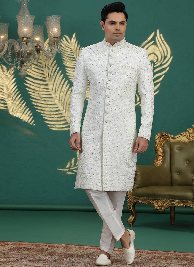 | Product Name | Art Silk White Wedding Wear Hand Embroidery Readymade Groom | |