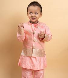 | Product Description | Elegant Soft Peach Kurta Set With A Regal Golden Detailed Jacket For A Charming Festive Look
