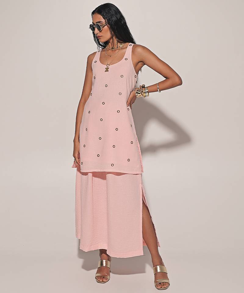 | Product Name | Pink Embroidered Linen Co Ord Set | |
