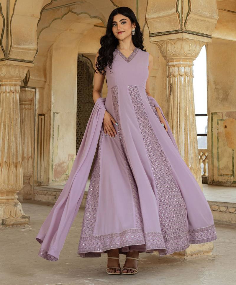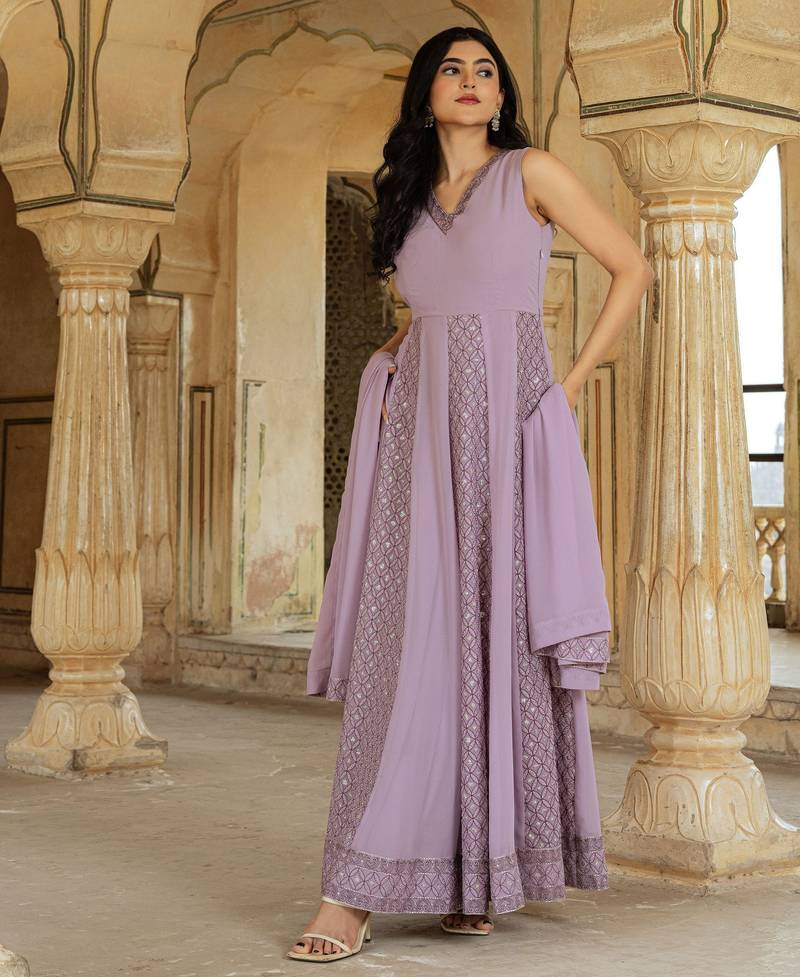 Lilac georgette embroidered gown