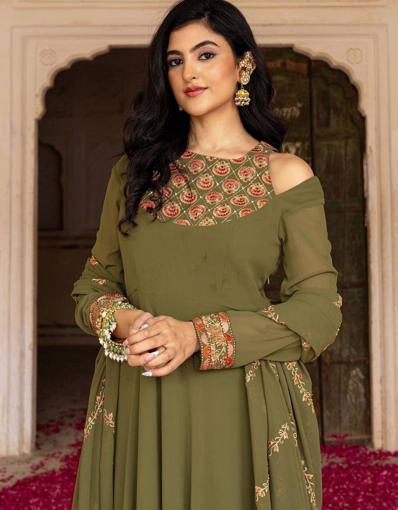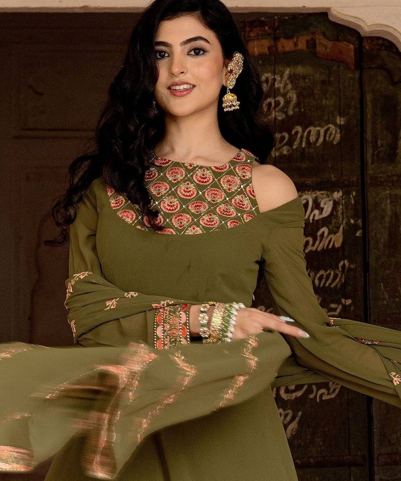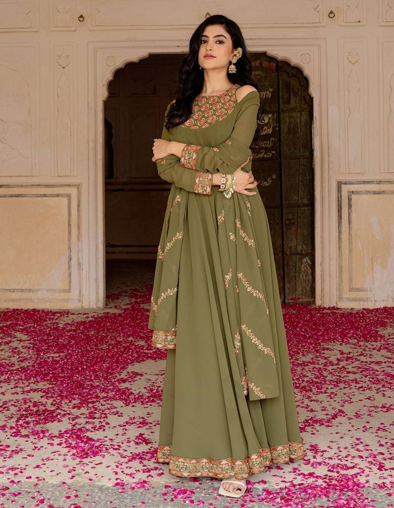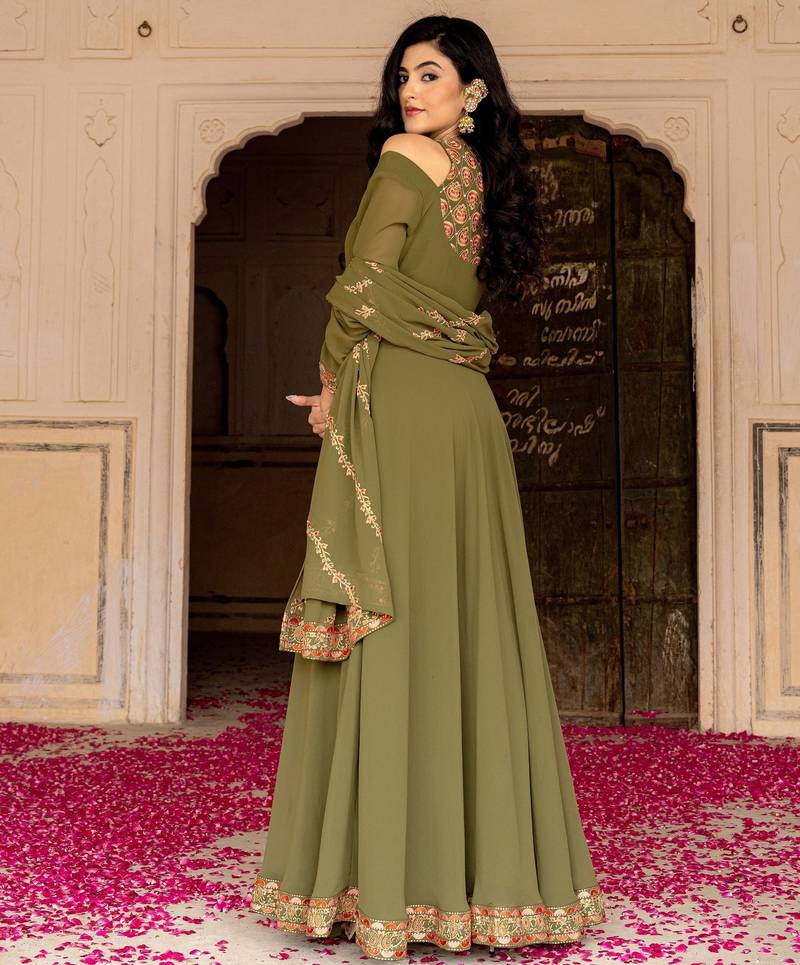 | • | Dupatta | : | Color- Olive / Fabric- Georgette |