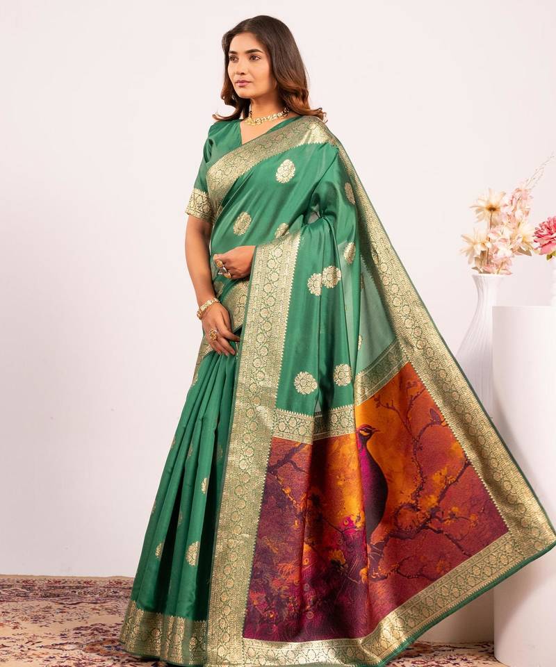 | • | Saree | : | Color- Green / Fabric- Art Silk |