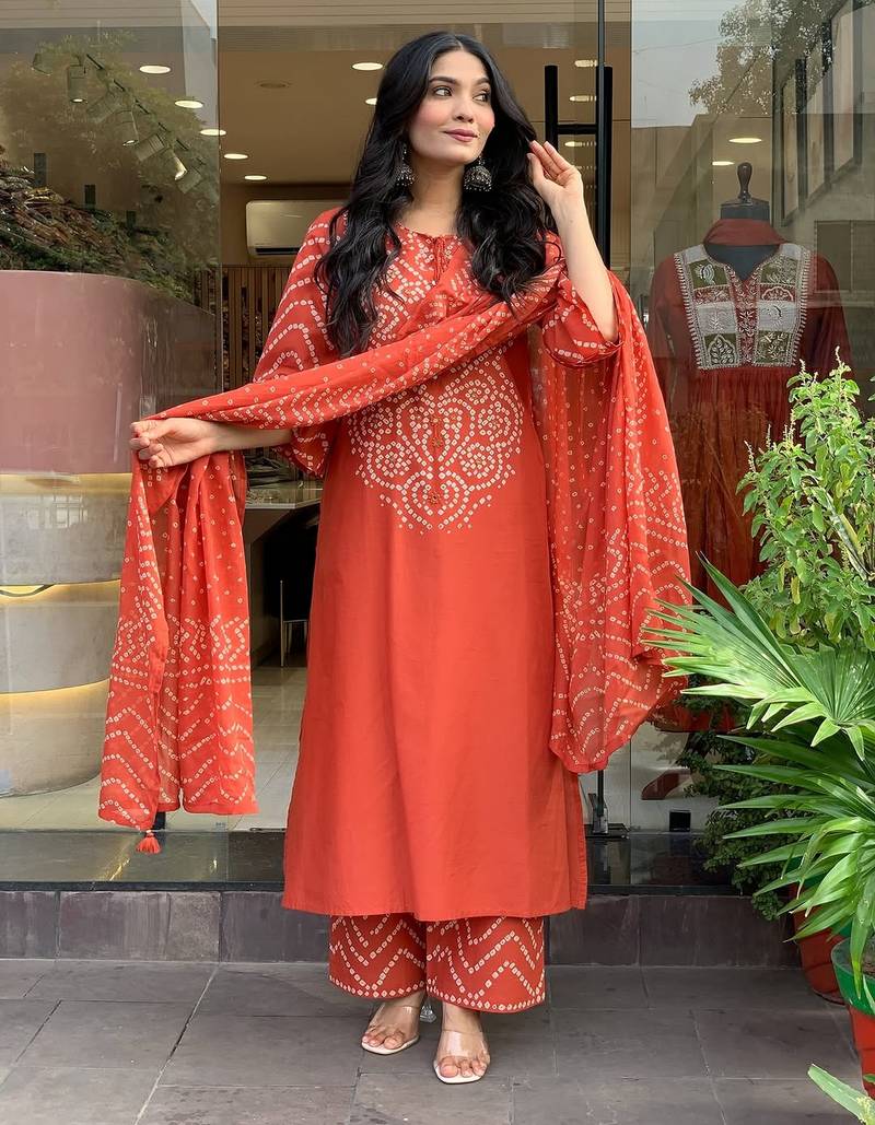 | Product Name | Rust Silk Blend Embroidered Partywear Salwar Kameez | |