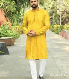 | Product Name | Men S Heavy Rayon Yellow Chikan Work Kurta With Cotton Pyjama | |