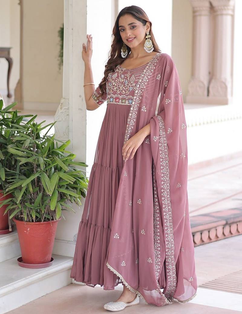 | • | Kameez | : | Color- Light Onion Pink / Fabric- Faux Georgette |