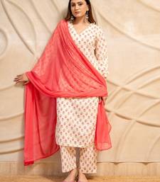 | Product Name | Cream Floral Printed Cotton Kurta With Straight Pants & Dupatta Set Of 3 | |