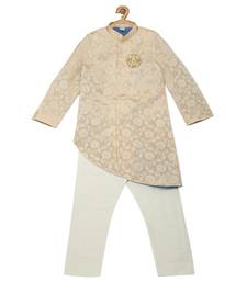 Gold cotton embroidered maharaja sherwani set