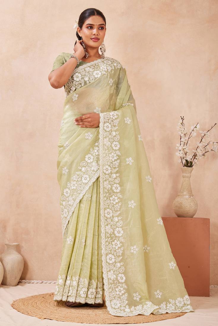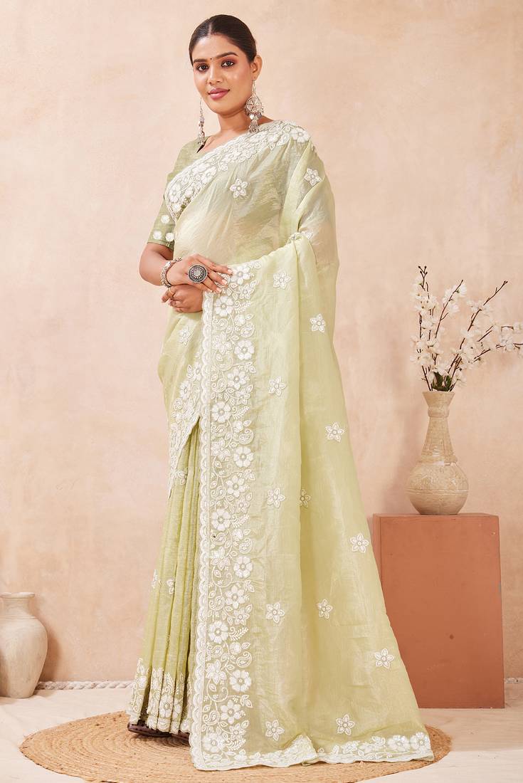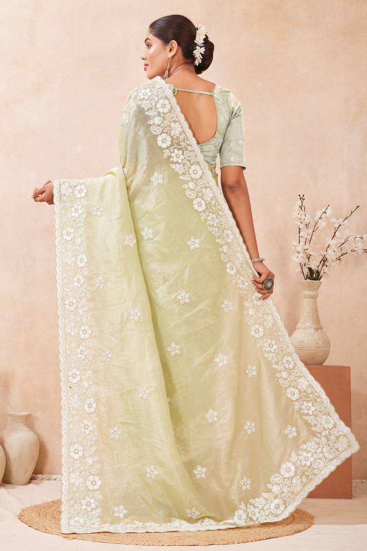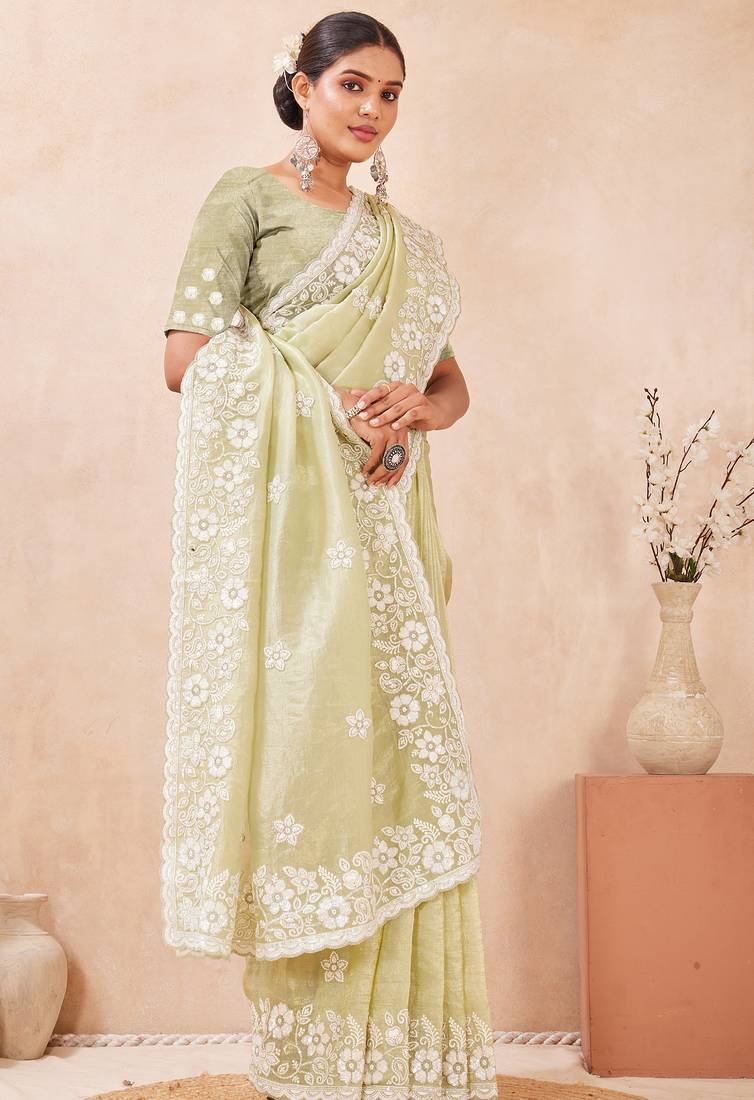| Product Name | Green Silk Saree With Heavy Sequin Resham Embroidery | |