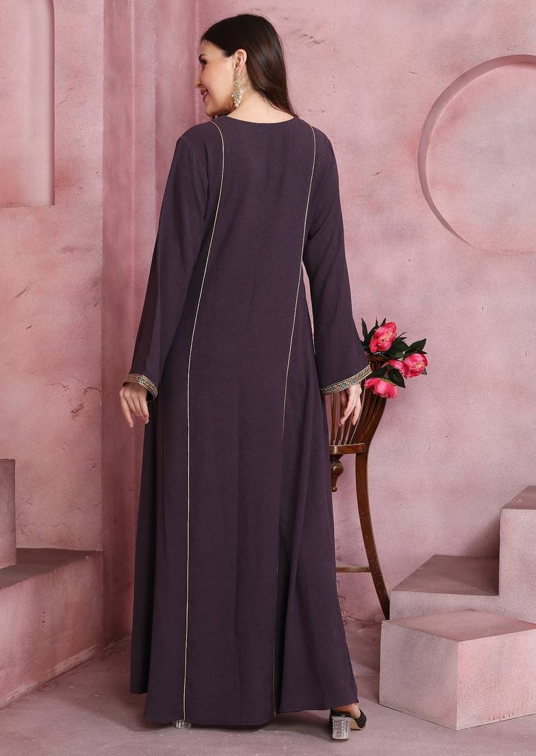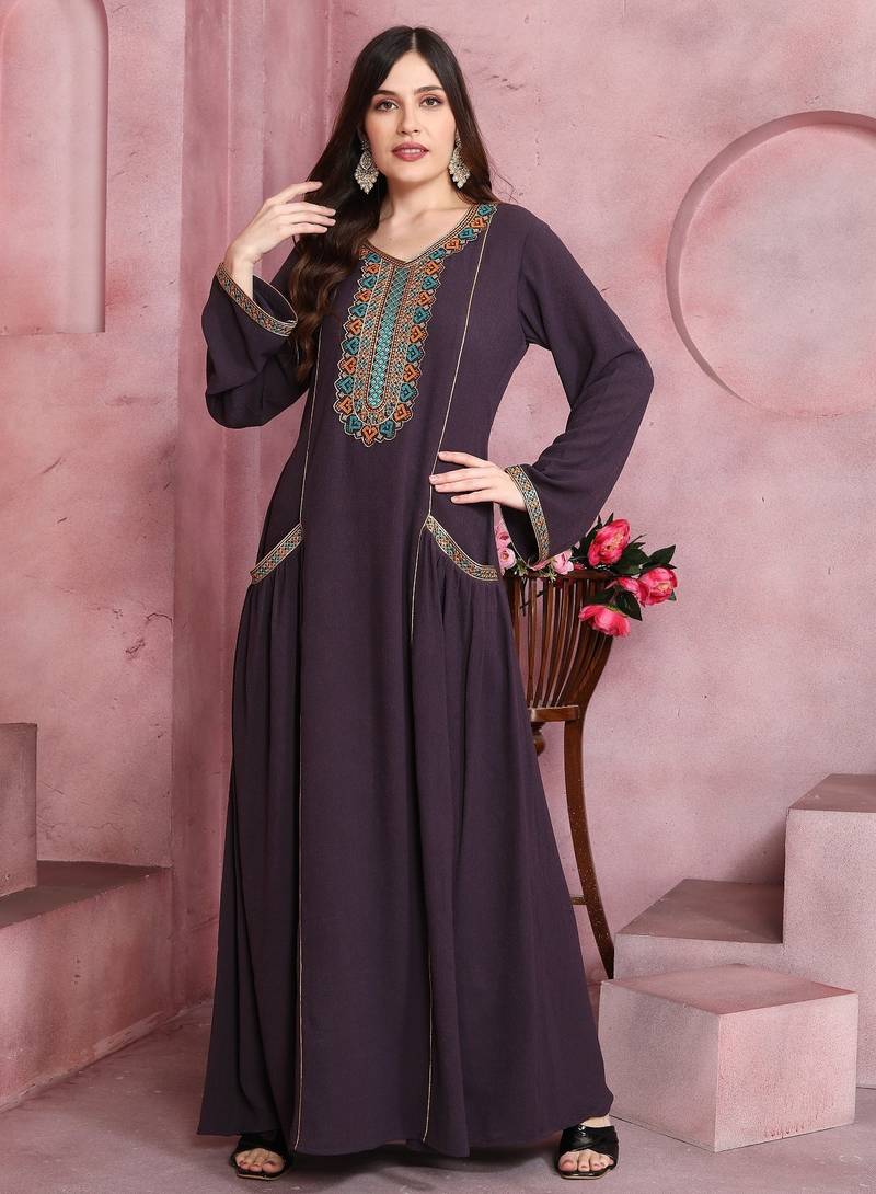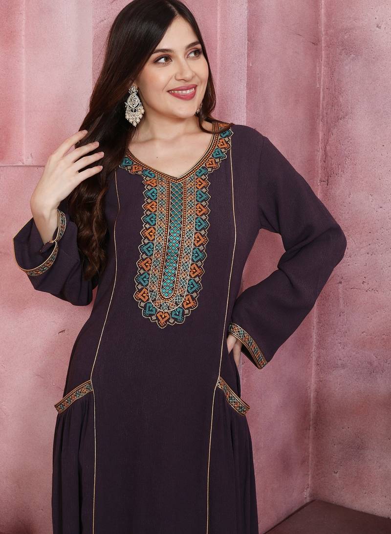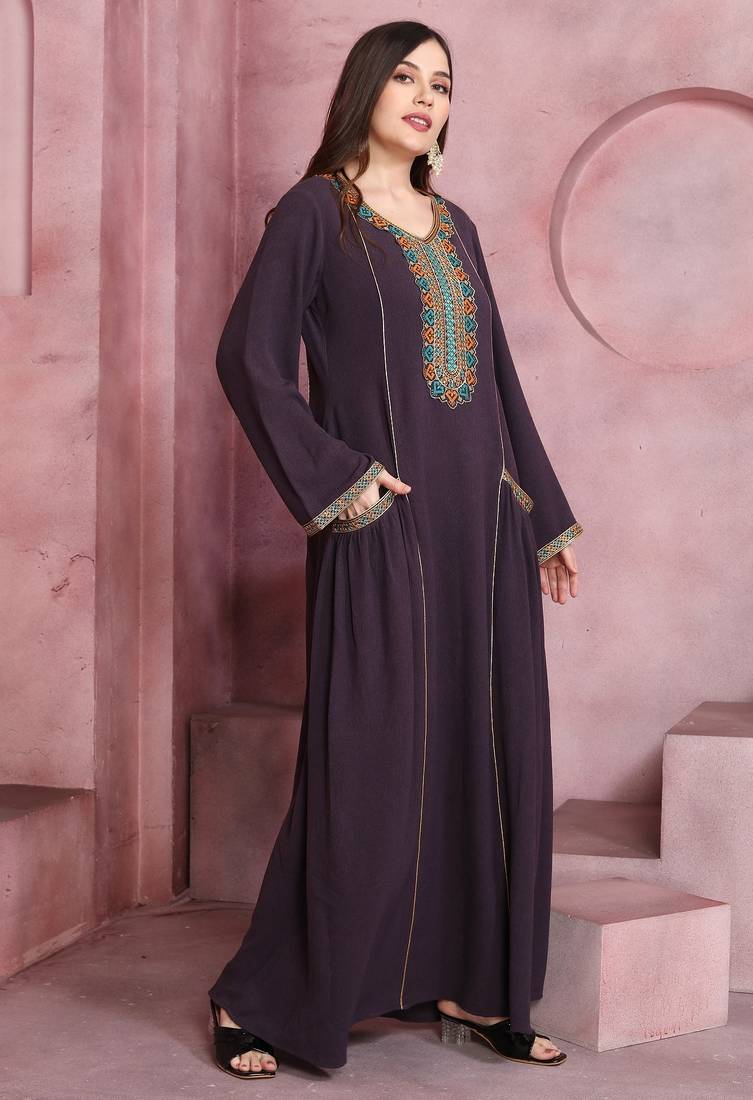 | Product Name | Plum Wine Embroidered Pocket Maxi Dress For Women | |