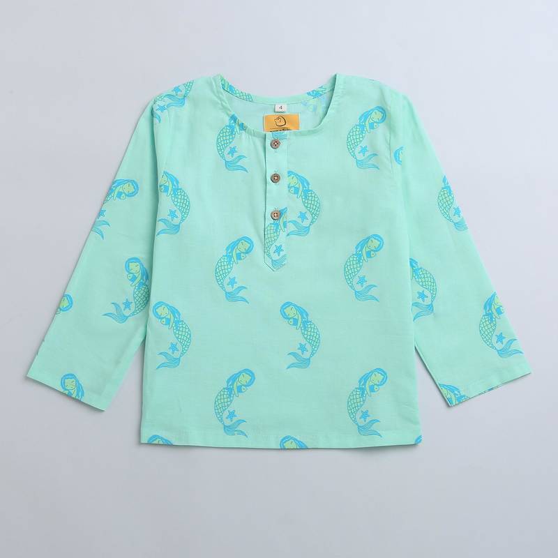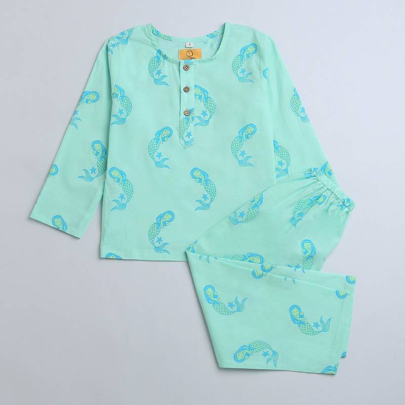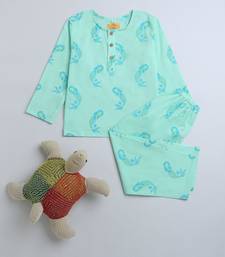 Green multicolor hand screen printed unisex sleepwear set- set of 2