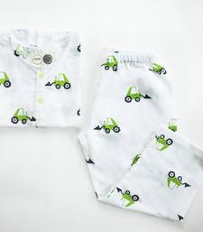Product Name | White Green Hand Screen Printed Unisex Sleepwear Set Set Of 2 | |