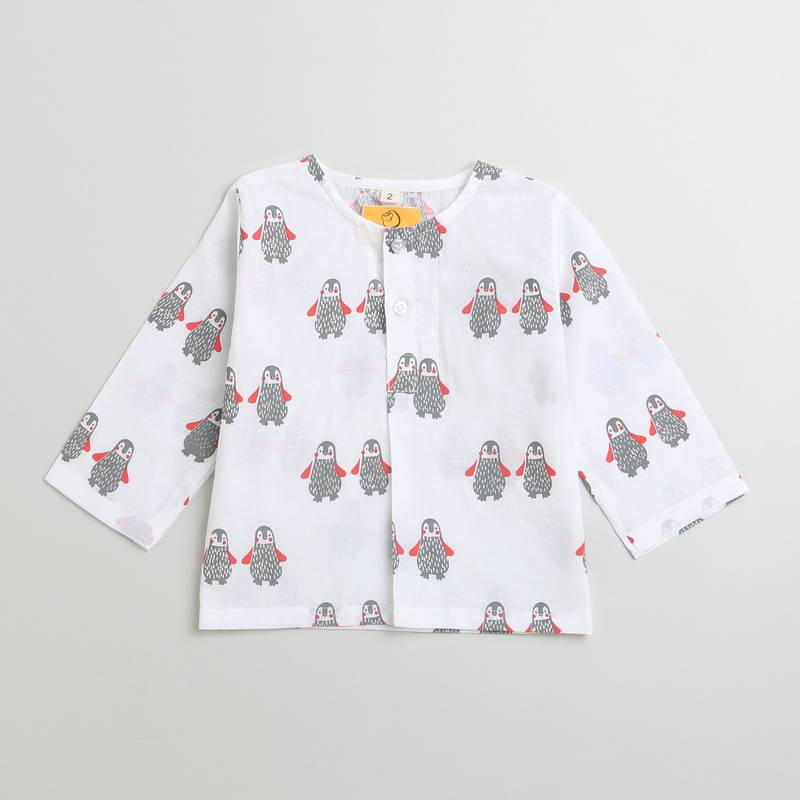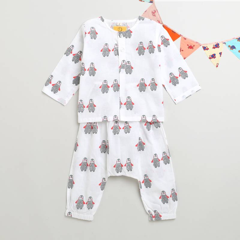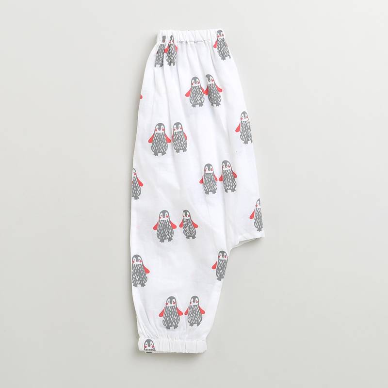White multicolor hand screen printed unisex sleepwear set- set of 2